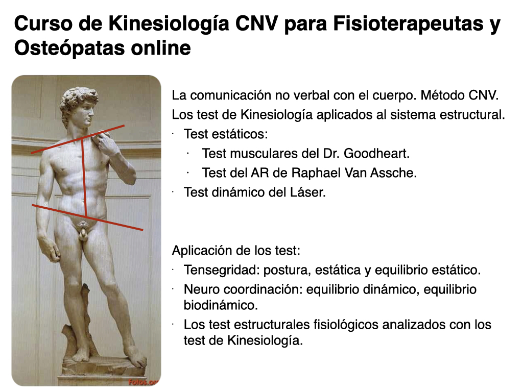 Utilización de los test de Kinesiología CNV en el curso online para fisioterapia y osteopatía.