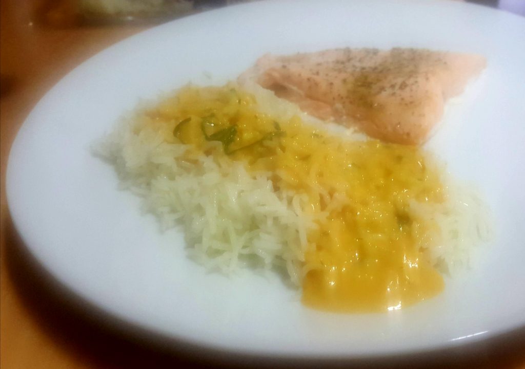 Salmón y arroz basmati con salsa crema de eneldo (Thermomix)