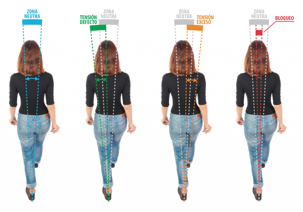 Al andar, el movimiento de la espalda realiza un vaivén de uno a otro lado del centro donde está la luz del puntero o donde marca el dedo, con un recorrido igual hacia izquierda y derecha, a la vez que con una amplitud uniforme de uno a dos centímetros. Esta observación sencillísima se mantiene todo el tiempo, por lo que es una zona que podemos utilizar de referencia o control. En “comunicación no verbal” C.N.V. la denominamos zona neutra.
