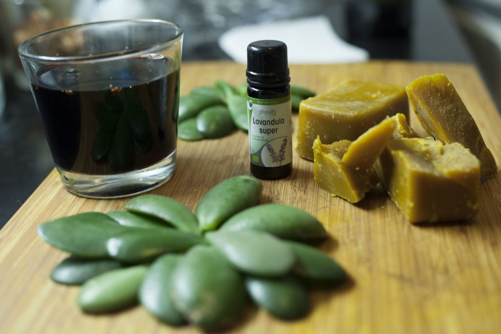 - Unas gotita de aceite esencial para darle olor (el olor que más os guste. Yo uso aceite de lavanda porque tiene propiedades cicatrizantes)